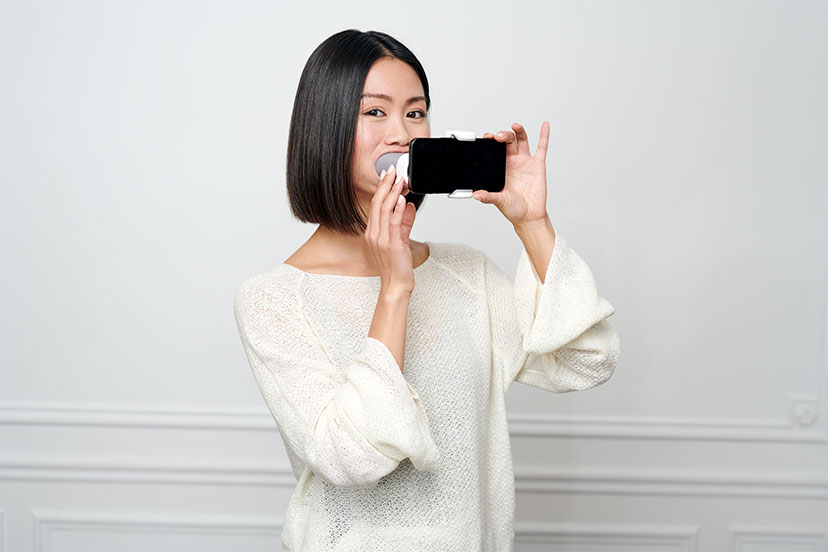 デンタルモニタリングは、AIを使ったスマホアプリによる遠隔チェックシステムです。おうちで週1回、お口の中をスマートフォンで撮影して送信するだけ。